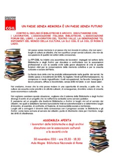 Di seguito il volantino che abbiamo predisposto per l’iniziativa del 30 novembre alla Biblioteca Nazionale di Roma, che svolgeremo insieme alle associazioni professionali ed a movimenti della società civile.