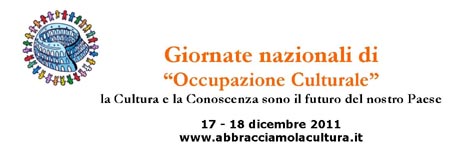 Per questi motivi la coalizione “Abbracciamo la cultura” ha inteso promuovere due giornate di occupazione culturale, il 17 e 18 dicembre p.v., durante le quali i cittadini partecipino ad iniziative volte a valorizzare gli innumerevoli beni storici, archeologici, paesaggistici, assieme a quelle che coinvolgeranno i teatri, i cinema, le biblioteche, i musei, i luoghi della musica. Insomma, tutto ciò che è produzione culturale.