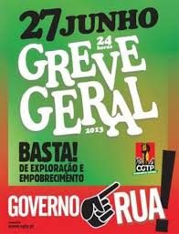 Giovedì 27 giugno si ferma, di nuovo il Portogallo. Un Portogallo stremato dalla politiche della troika, che dopo aver elogiato il paese per la sua ‘dedizione’ all’applicazione delle politiche di austerità, ha duramente criticato la decisione della Corte costituzionale che ha bocciato alcuni provvedimenti verso il settore pubblico, deciso dal governo. Uno sciopero contro le politiche di austerità imposta dal governo di destra e dalla troika. E’ uno sciopero E’ uno sciopero generale indetto sia sa CGTP che da UGT-P, pur con alcune, importanti differenze. CGTP, ad esempio chiede con forza le dimissioni del governo. E’ il decimo sciopero generale e il quarto sciopero unitario.