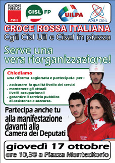 Unitamente a CISL UIL e FIALP CISAL di categoria abbiamo indetto, proseguendo nelle iniziative previste all’interno della vertenza Croce Rossa, il presidio in piazza Montecitorio per il prossimo giovedì 17 ottobre.