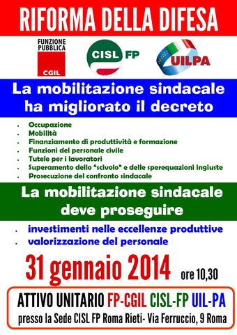 “Distinzione tra funzioni del personale civile e militare, miglioramento delle tutele per i lavoratori, mantenimento del tavolo di confronto: sui provvedimenti di razionalizzazione dello strumento militare abbiamo ottenuto modifiche importanti. Segno evidente che il confronto paga”. Questo il commento di Fp-Cgil, Cisl-Fp e Uil-Pa in merito al provvedimento di riforma del Ministero della Difesa approvato oggi in Consiglio dei ministri. I sindacati, che da mesi sono mobilitati per una riorganizzazione organica con i lavoratori e non contro i lavoratori, esprimono soddisfazione per le correzioni al testo del decreto, ma anche per la disponibilità, confermata ieri all’incontro con il Ministro Mario Mauro, a proseguire il confronto per ulteriori miglioramenti da inserire in decreti successivi, previsti sempre dalla legge delega. Già prima dell’estate Fp-Cgil Cisl-Fp Uil-Pa, grazie al confronto e alla mobilitazione delle lavoratrici e dei lavoratori, avevano ottenuto modifiche rilevanti – dalla salvaguardia dei livelli occupazionali, fino alla gestione condivisa della mobilità e alla destinazione di parte dei risparmi alla produttività e alla formazione – dopo l’incontro di ieri i sindacati valutano in maniera positiva “la distinzione netta tra le funzioni tecniche e amministrative, che saranno riservate esclusivamente al personale civile, e quelle operative e di comando che competono ai militari”. Nel nuovo testo, che estende le tutele per i lavoratori civili della Difesa, anche il superamento dello scivolo per il personale militare. Prevista inoltre una nuova tabella di equiparazione per i militari che transitano nei ruoli civili: “Si sana in questo una situazione ingiusta, riportando ragionevolezza nei rapporti fra lavoratori”. Le federazioni di categoria di Cgil Cisl e Uil sottolineano infine che sono possibili ulteriori margini di miglioramento: “Il confronto con il Ministro rimarrà aperto. Ed è già in calendario ai primi di febbraio un nuovo incontro per verificare e correggere la riforma. Lì chiederemo di migliorare ancora i provvedimenti, a iniziare dagli investimenti nelle eccellenze produttive della Difesa e dalla valorizzazione del personale”.