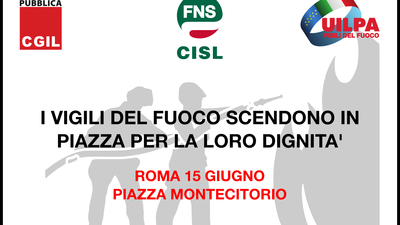 Il 15 giugno alle ore 9.00 a Montecitorio la Fp Cgil VVF, la FNS Cisl e la Uil PA VVF, UNITARIAMENTE così come richiesto dai lavoratori, manifesteranno per continuare nel chiedere adeguate risorse economiche attraverso il rinnovo del contratto e una valorizzazione retributiva e previdenziale adeguata al lavoro che svolgono.