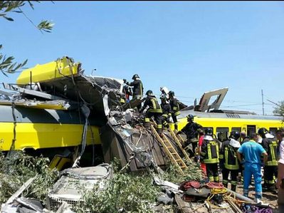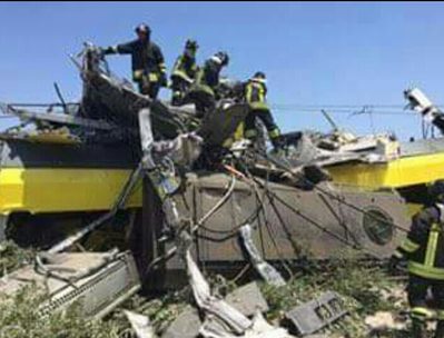 12.07.2016 – I Vigili del fuoco sono al lavoro per portare soccorso ed estrarre dalle lamiere i passeggeri coinvolti nell’incidente ferroviario di Corato.