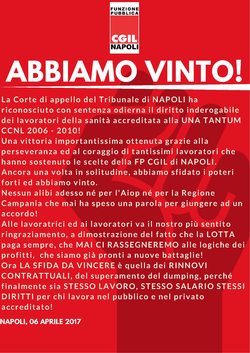 Una vittoria importantissima ottenuta grazie alla perseveranza ed al coraggio di tantissimi lavoratori che hanno sostenuto le scelte della Fp Cgil di Napoli.