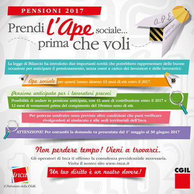 l’Ape sociale… prima che voli’. Parte la campagna di informazione