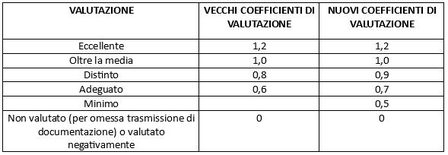 All’esito della discussione, le parti hanno convenuto di modificare, nei termini indicati nella tabella di seguito riportata, i coefficienti di valutazione attribuiti ad ogni diverso giudizio espresso dall’O.I.V. in base al grado di raggiungimento degli obiettivi.