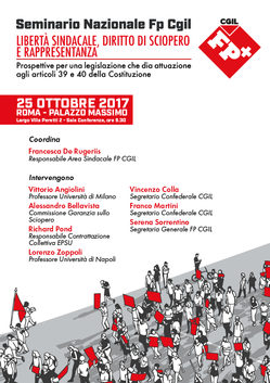 Un appuntamento, coordinato da Francesca De Rugeriis (responsabile Area Sindacale Fp Cgil), che vedrà gli interventi di Vittorio Angiolini (professore di Diritto Costituzionale all’Università degli Studi di Milano), Alessandro Bellavista (membro della Commissione di Garanzia sullo Sciopero), Richard Pond (responsabile per Epsu della Contrattazione collettiva e della campagna sul Diritto di Sciopero Right2strike), Lorenzo Zoppoli (professore di Diritto del Lavoro all’Università Federico II di Napoli), Vincenzo Colla e Franco Martini (segretari confederali Cgil) e Serena Sorrentino (segretaria generale Fp Cgil).