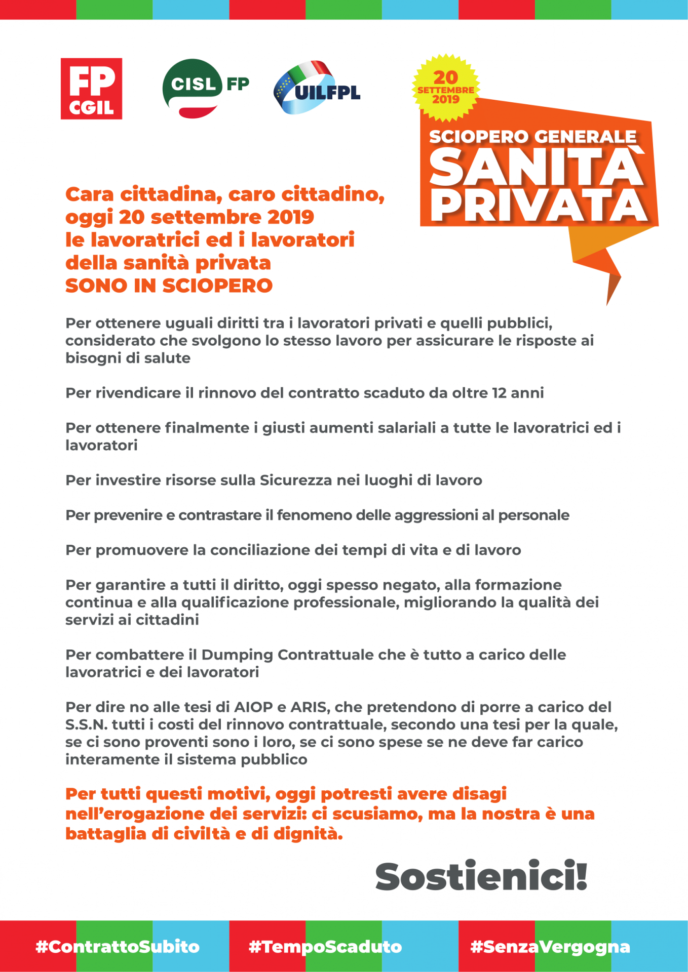 Volantino per i cittadini sciopero 20 settembre sanità privata