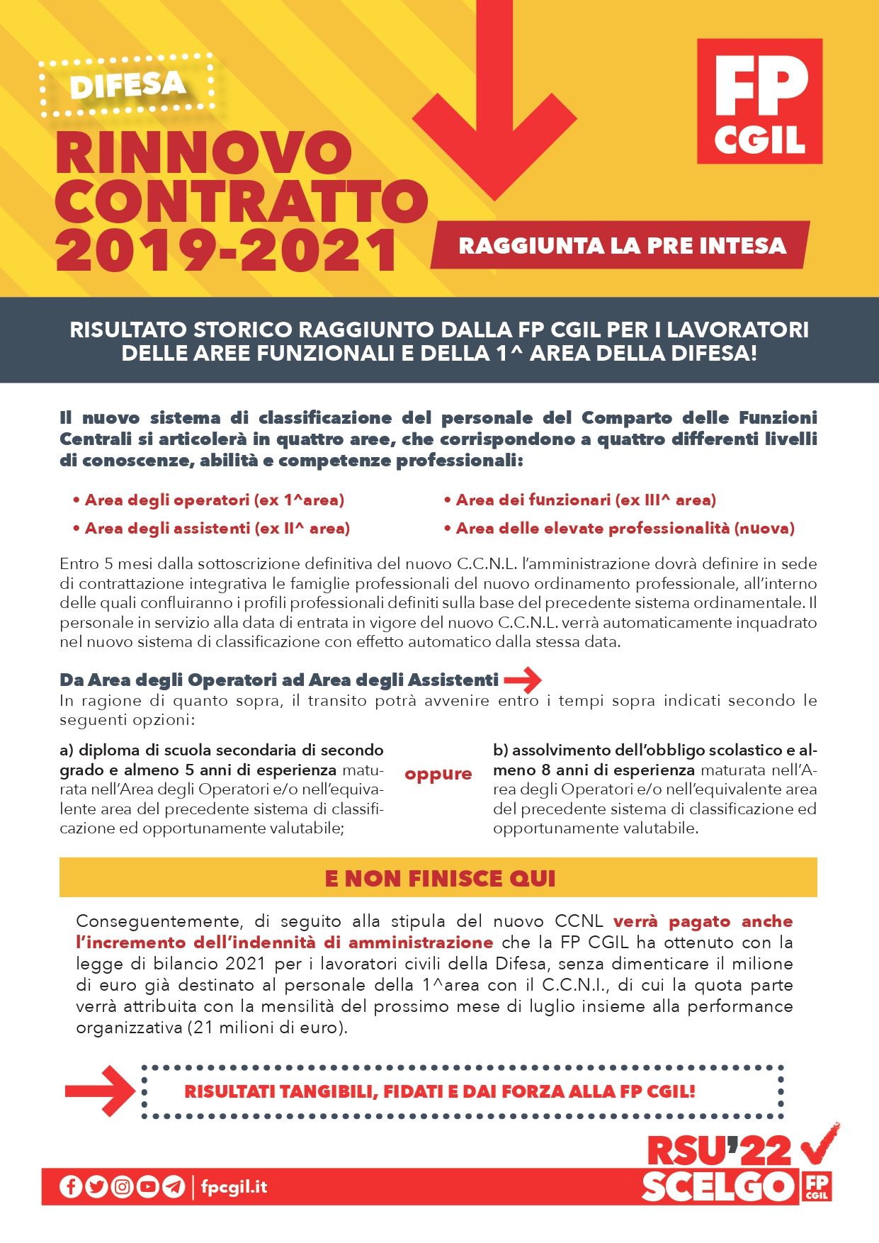 Ministero Difesa – invio preintesa CCNL 2019-2021 e Volantino 1^ area