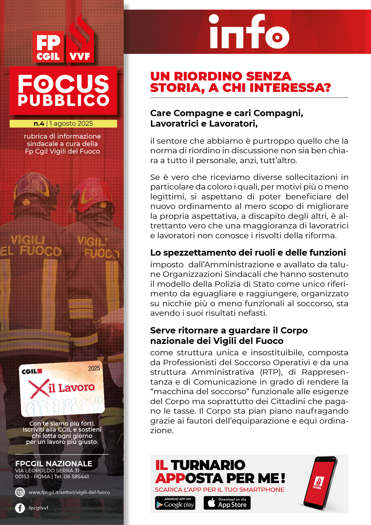 VVF: L’informativa della Fp Cgil VVF – Focus Pubblico n. 4