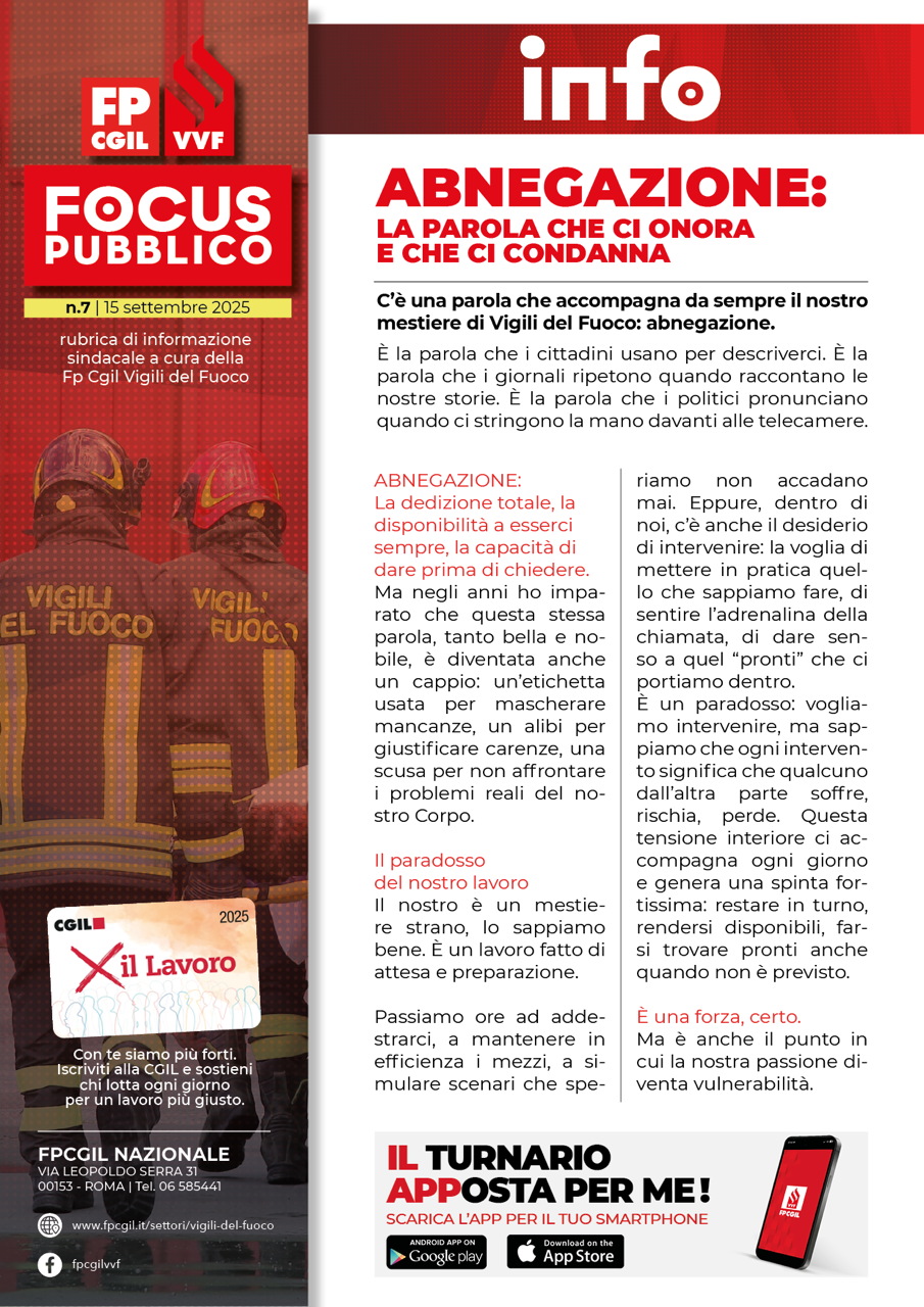 Un Paese che vive sulle spalle dell’abnegazione dei suoi Vigili del Fuoco, senza garantirgli stipendi adeguati, organici e diritti, è un Paese che non ha capito la lezione: senza di noi, senza la nostra forza, senza la nostra passione, non c’è sicurezza, non c’è protezione civile, non c’è futuro
