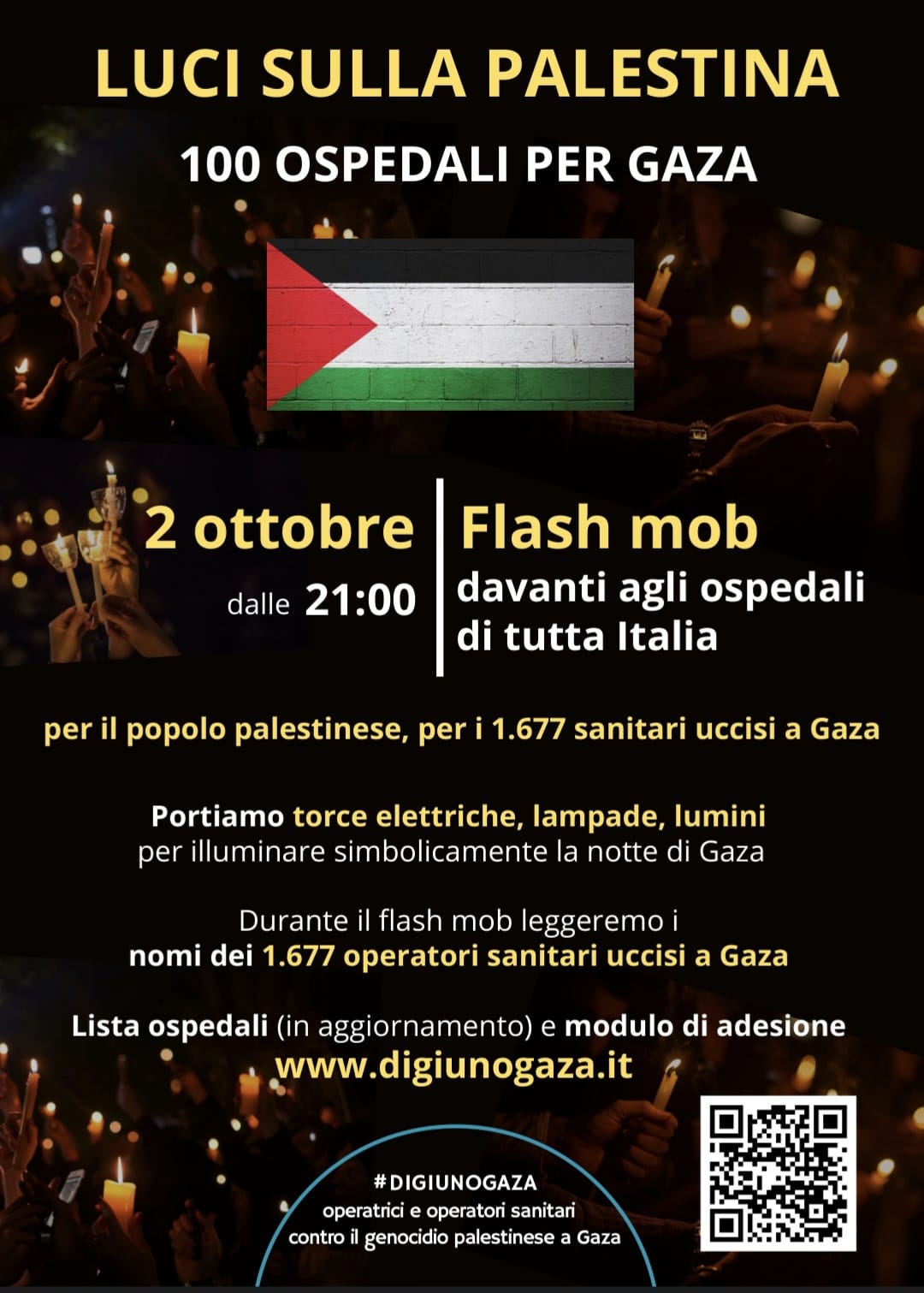 Come organizzazione sindacale delle lavoratrici e dei lavoratori della sanità sosteniamo e supportiamo la giornata Luci sulla Palestina – 100 ospedali per Gaza promossa per il 2 ottobre.