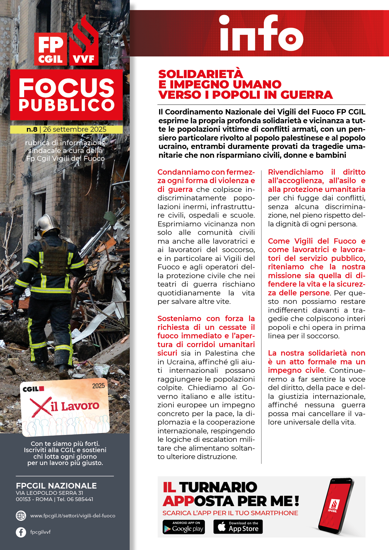 News 10 Ottobre 2025 VVF: PFAS nei capi dei Vigili del Fuoco – Continua la richiesta di tutela per le lavoratrici e i lavoratori del Corpo Focus Pubblico n.10