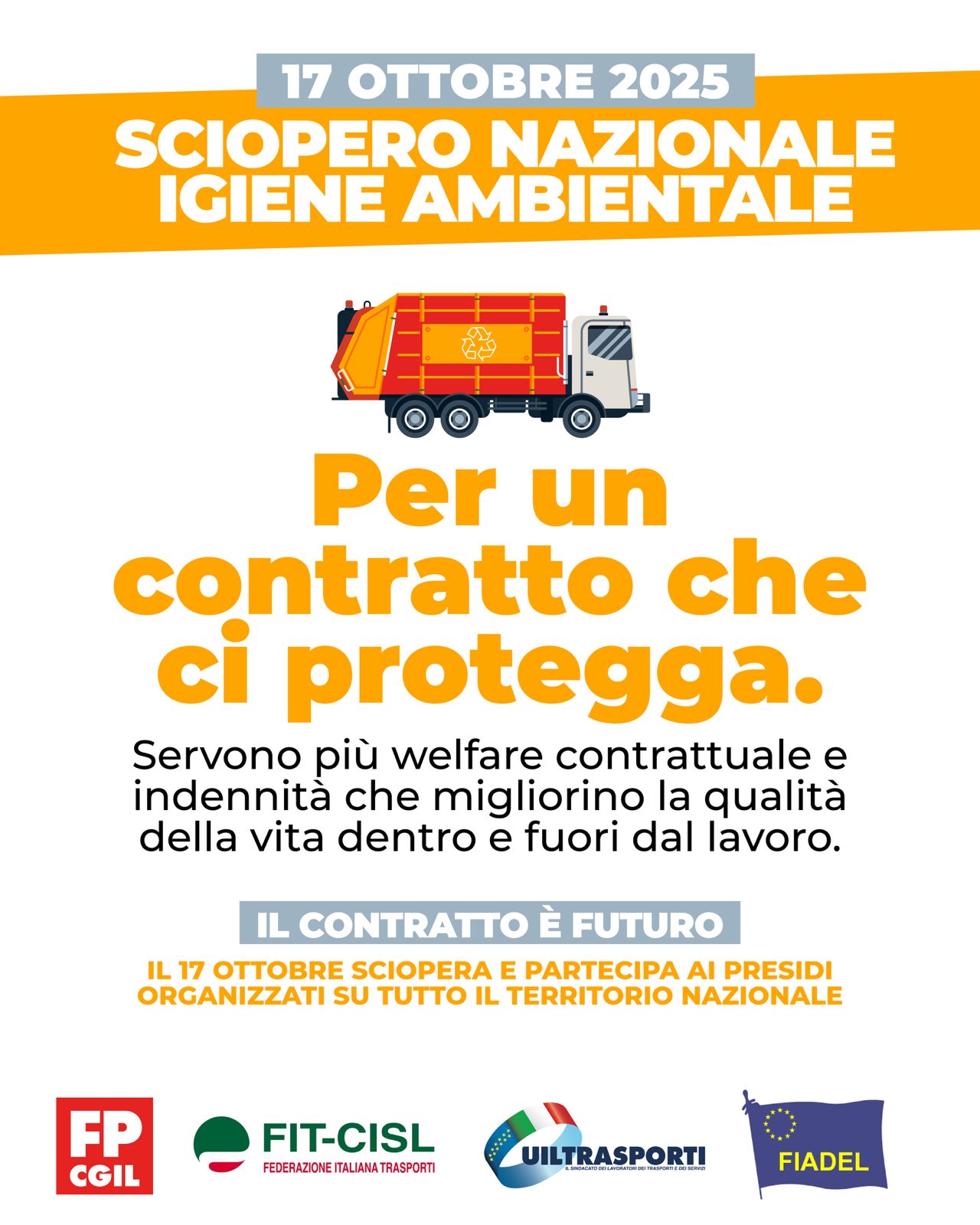 News 24 Settembre 2025 Igiene Ambientale – Sciopero 17 ottobre 2025: per rivendicare salari dignitosi, più sicurezza, più tutele e un contratto che valorizzi lavoratrici e lavoratori