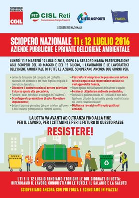 nuova iniziativa di sciopero per lunedì 11 e martedì 12 luglio 2016.