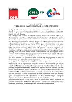 Fp Cgil, Cisl Fp e Uil Pa, dopo i diversi incontri tenuti sin dall’insediamento del Ministro Orlando ed i provvedimenti sin ora adottati dal Governo, ritengono del tutto insoddisfacenti le risposte date sulla Giustizia.