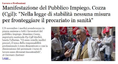 insostenibili tagli, per una risposta vera ai 10mila medici precari, per