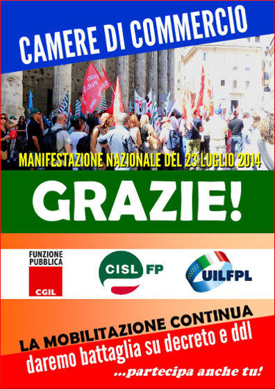 Fp-Cgil Cisl-Fp Uil-Fpl ringraziano i lavoratori delle Camere di Commercio per la straordinaria mobilitazione e rimarcano con forza l’impegno a percorrere ogni strada per cambiare i provvedimenti del governo (a partire dal decreto e dal ddl annunciato) e chiedere una riorganizzazione del sistema camerale con meno livelli, meno spese inutili e più valorizzazione delle competenze che servono allo sviluppo del Paese.