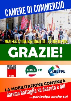 Fp-Cgil Cisl-Fp Uil-Fpl ringraziano i lavoratori delle Camere di Commercio per la straordinaria mobilitazione e rimarcano con forza l’impegno a percorrere ogni strada per cambiare i provvedimenti del governo (a partire dal decreto e dal ddl annunciato) e chiedere una riorganizzazione del sistema camerale con meno livelli, meno spese inutili e più valorizzazione delle competenze che servono allo sviluppo del Paese.