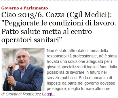 “È tempo che il Governo e in primo luogo la Ministra della Salute Beatrice Lorenzin intervengano per l’approvazione di una normativa appropriata sulla responsabilità professionale in sanità, partendo dai progetti di legge in discussione in Parlamento, promuovendo una campagna di comunicazione sociale da avviare proprio dalla Rai. Possibilmente – conclude il segretario nazionale della Fp-Cgil Medici – senza farsi autogol”.