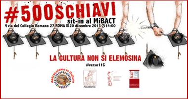 in allegato vi inviamo il comunicato congiunto con le Associazioni relativo al sit in di domani al quale parteciperemo nell’ambito della coalizione “Abbracciamo la cultura”. Così come parteciperemo alla manifestazione nazionale del 11 gennaio unitamente alla quasi totalità delle associazioni professionali e culturali del settore. Il bando, com’è noto, è stato modificato con una precipitosa marcia indietro rispetto ai criteri penalizzanti su cui era statao costruito l’originario. Noi comunque manteniamo un atteggiamento di forte contrarietà per i motivi che abbiamo ampiamente esposto nei recenti comunicati. Riteniamo un grave errore affrontare la questione della formazione in modo così penalizzante e senza prospettive occupazionali serie, la modifica del bando non risolve questo problema e per questo siamo solidali con quanti intendono portare una battaglia per la buona occupazione nei beni culturali.