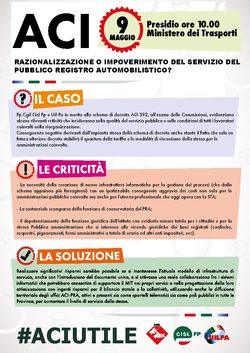 I sindacati chiedono un confronto con i ministri della Pubblica amministrazione e dei Trasporti, Marianna Madia e Graziano Delrio, “per evidenziare le criticità che il decreto comporta sia per il servizio pubblico che per i lavoratori”. Per Fp Cgil, Cisl Fp e Uil Pa “il documento unico, così come previsto dallo schema di Decreto adottato dal Governo, non realizza alcun vantaggio per il cittadino: non è previsto alcun risparmio né tanto meno una semplificazione”. Al contrario secondo i sindacati il decreto determina “il venir meno dei servizi oggi garantiti dall’Aci e un ulteriore complicazione delle procedure con possibili aggravi di costi e perdita di tempo per i cittadini”.