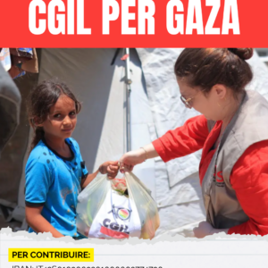 Dall’inizio del conflitto, nell’autunno 2023, la CGIL ha avviato una raccolta fondi per l’invio di aiuti umanitari alla popolazione civile della Striscia di Gaza.