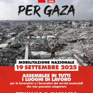 La mobilitazione della CGIL e della Fp Cgil per fermare la barbarie in corso a Gaza e in Cisgiordania si è attivata e proseguirà nei luoghi di lavoro, nelle piazze delle nostre città e con il supporto concreto che abbiamo dato alla Global Sumud Flottilla.
