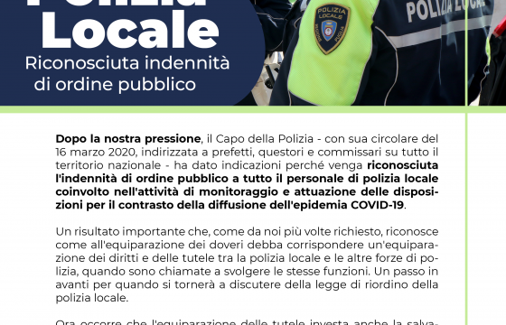Coronavirus: Cgil Cisl Uil Fp, definire impiego Polizia Locale in attività controllo territorio
