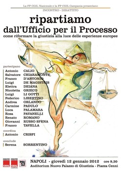 Ieri a Napoli abbiamo presentato la nostra proposta di riforma organizzativa degli uffici giudiziari che prevede la valorizzazione del personale attraverso un vero processo di riqualificazione. La proposta ha riscosso molti apprezzamenti sia dagli altri operatori presenti che dalla politica; ve la inviamo perché sarà certamente parte integrante della nostra campagna elettorale rsu negli uffici giudiziari e ci permette di presentarci alle elezioni con una proposta concreta.